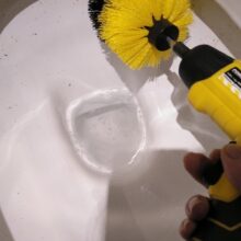 Cut my bathroom scrub time by half and works way better then just hand power! I’ve got a bad back so scrubbing for long periods is a no go. Let the cleaner soak or not the drill has enough power to scrub anything out for you.